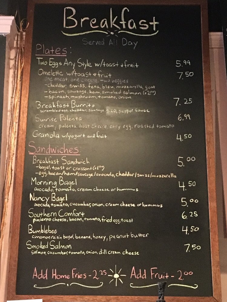 The menu highlights include the Forest Hill Wrap, a vegan sensation packed with quinoa, chickpeas, and fresh veggies for just $10.00, and the indulgent Main Street Sandwich, featuring crispy bacon and creamy avocado for $9.75. Breakfast enthusiasts will revel in dishes like the three-egg omelette or the delectable breakfast burrito, both designed to start your day right.